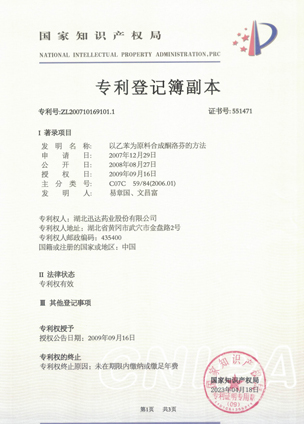 公司擁有一支高素質(zhì)科研隊(duì)伍,具備專業(yè)而高效的研發(fā)能力。近幾年,共取得科技成果30項(xiàng),其中9項(xiàng)獲國(guó)家發(fā)明專利,2項(xiàng)獲湖北省科技進(jìn)步獎(jiǎng),開(kāi)發(fā)新產(chǎn)品8個(gè),綠色合成、手性合成和催化等技術(shù)引領(lǐng)行業(yè)發(fā)展。主要銷往歐美、日本、韓國(guó)、中東、印度等40多個(gè)國(guó)家和地區(qū)。